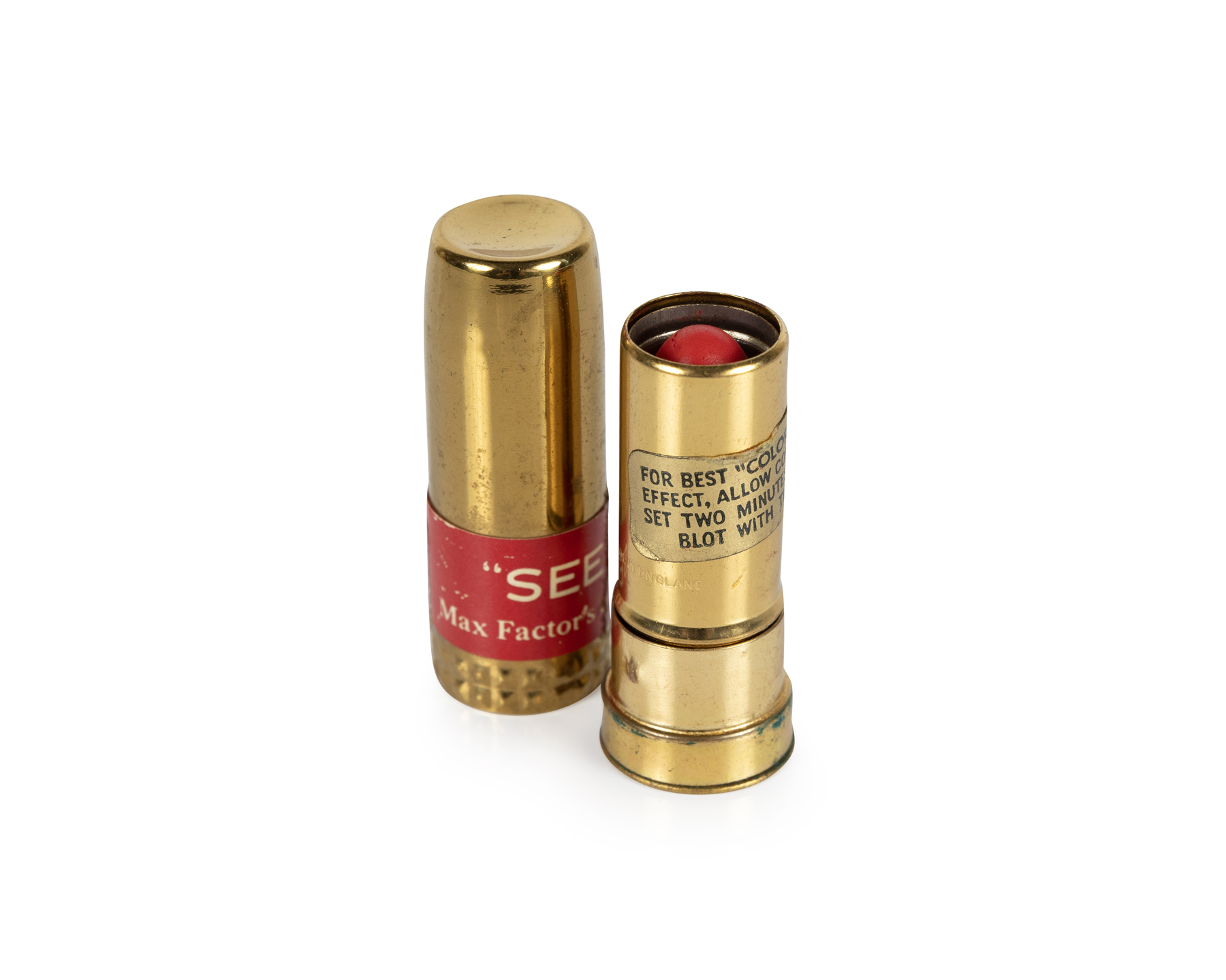 Monica’s mother gave her this lipstick, which was acquired in Bristol, United Kingdom, likely in the 1970s – its origins, Monica believes, are the 1950s. It was likely never worn, but has been carried and stored by Monica – it now finds a new home in the teaching store, and will inform Dr Merle Patchett’s research into glamour and geographies of fashion and style. As the lipstick came with no labelling it is currently being analysed by organic chemists in the University of Bristol’s Chemistry Department to see what the product it is made out of and possibly identify where those materials and pigments originate from. In the United States, the requirement for ingredient labeling on makeup became mandatory for products labeled after November 30, 1976. In the European Union, the current requirement is based on EU Regulation (EC) No 1223/2009, which came into effect in 2013 in the UK. This regulation mandates that cosmetic products must have a label listing ingredients for safety purposes, alongside other information such as the manufacturer’s address, contents, and warnings.