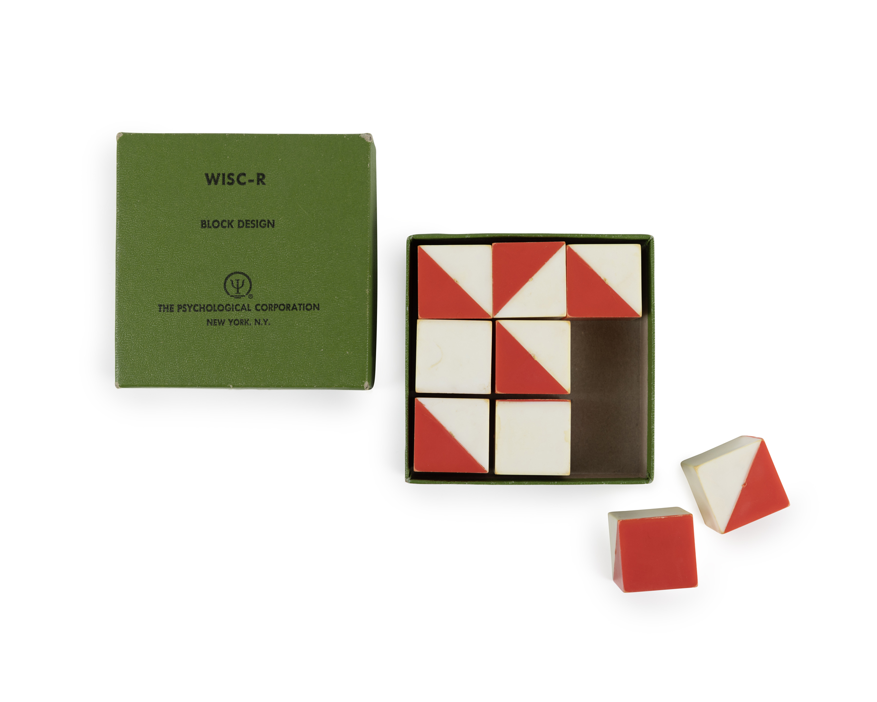 Small cubes, jigsaws and blocks have been used to categorise, labels, rank people by intelligence – a notion laden with class, racial, ethnic, and gender bias – for over 100 years with profound lived effects and inequalities. These test kits are now perhaps antiques but also implosions (Haraway, 1997) which can be teased open – ‘ad hoc archives’ (Patchett, 2017) that challenge whether intelligence even matters.